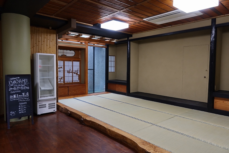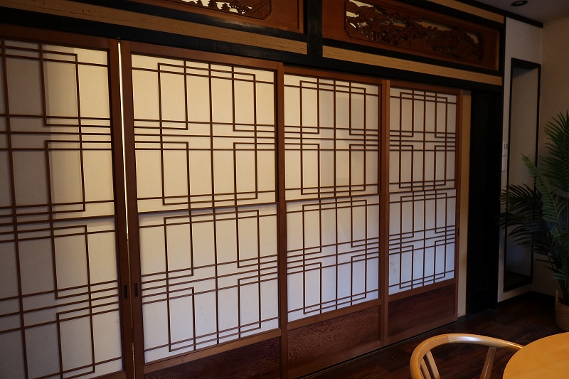 店内は前居住者の趣味であろう和の趣を大事に改装されており、欄間その他見事な建具があちこちに残されている。舞台のようになった畳スペースなどもあり、いろいろな使い方ができそうである。