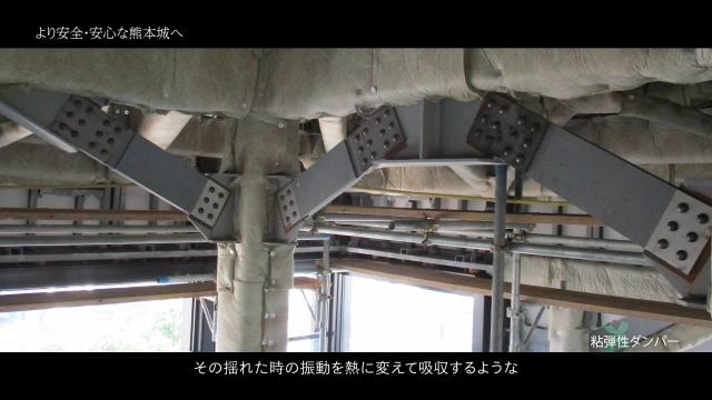 天守閣の復旧工事で設計を担当する株式会社大林組設計本部設計品質管理部長の清沢唯志氏は、鉄筋コンクリートの天守閣の制震性を高めるダンパーを設置したり、車椅子用のエレベーターを新設したりして、「地震の前よりも安全・安心で、堅牢な天守閣を目指しています」と解説。地震の経験を生かした、復旧工事が進められているという。