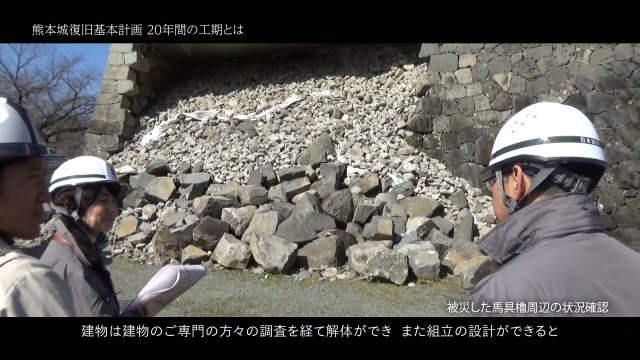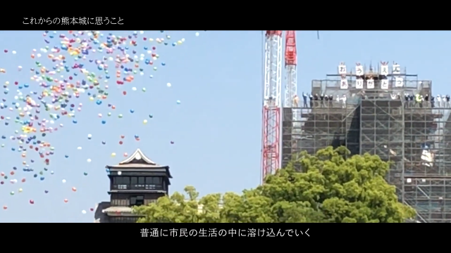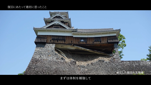 セミナーの前半、「熊本城復旧の姿」というタイトルで、セミナーのパネリストなどへのインタビュー映像が流された。