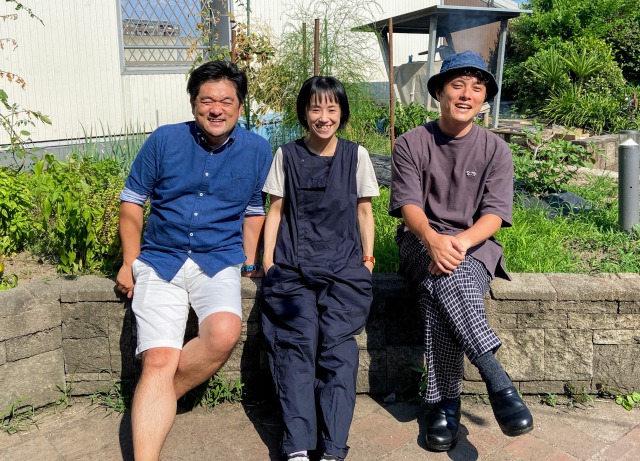 ホーホゥの共同経営者、左から木藤亮太さん、坂口麻衣子さん、森重裕喬さん。3人をはじめ、スタッフの多くが、多彩な“複業”を持っているのがホーホゥの特徴だ。「ホーホゥはまちづくり会社と呼ばれるけれど、まちづくりとはそもそも何か。にぎわいとは、活性化とは何か、常に問い直していくのが私たちの仕事です」と3人現在、「こととば那珂川」の一員としてナカイチの運営を担うホーホゥは、坂口さんを中心に立ち上げた会社だ。