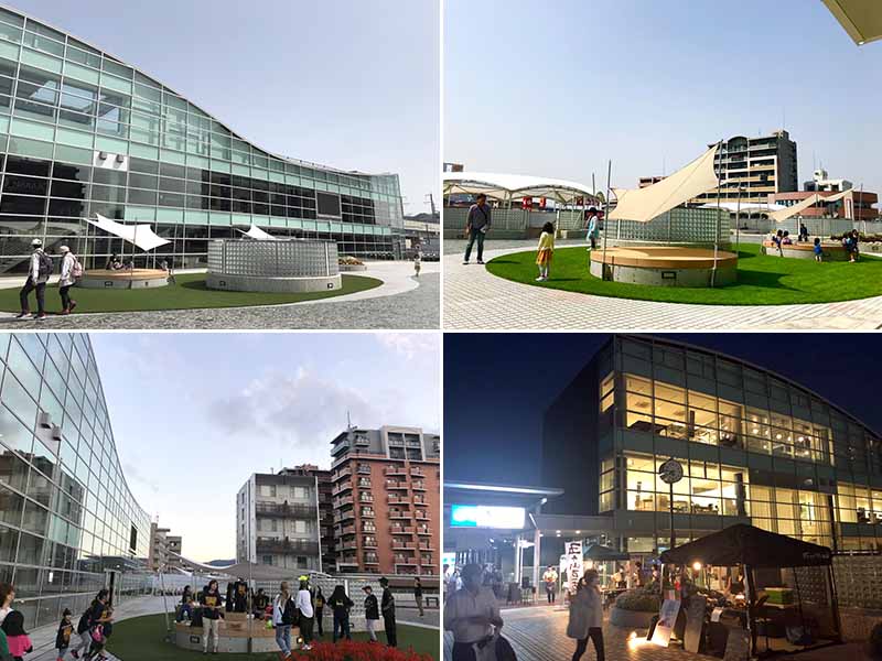 最上階の4階は大半が屋上庭園で、ビルと並行して走る九州新幹線の勇姿が子どもたちに人気だ。夜は地産地消を掲げる「博多南ナチュラルビア&オイスターガーデン」が開店し、夏はビアガーデン、冬は牡蛎小屋が楽しめる。
