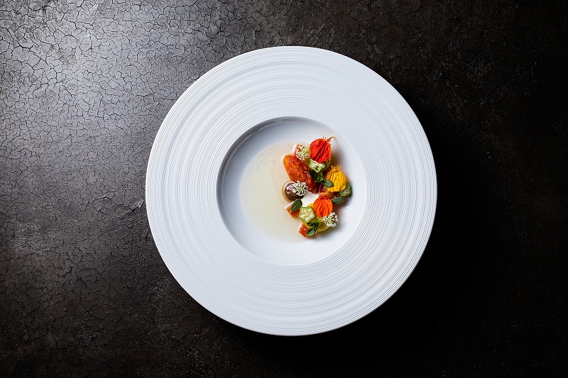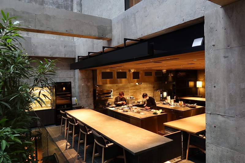 フロントの裏にはメインダイニングである「the RESTAURANT」が配されている。キッチンは客席に囲まれ、シェフの一挙一動がすべて見え、対話もできるオープンなものとなっており、地元群馬の食材を現代風にアレンジした食事が供される。前橋市の観光案内をみると、豚肉料理や焼きまんじゅうが名物とあり、おっきりこみ(幅の広いうどん)やすいとんなども知られた存在。そうした素朴な素材がどのようにアレンジされているのか。キッチンの美しい空間からはたぶん、誰も知らなかった味が生み出されているのだろうと思う。