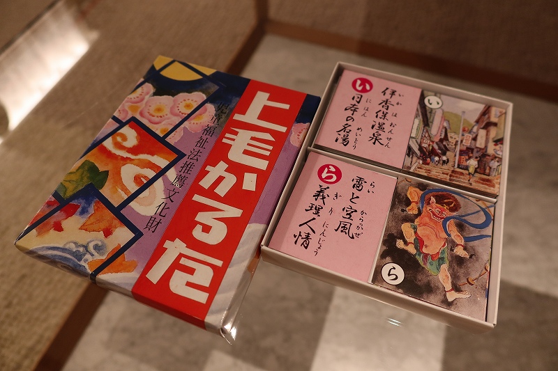 もうひとつ、この土地らしいこだわりが各部屋に用意された上毛かるた。上毛とは群馬県の古称で、上毛かるたはその名の通り、県内の名所旧跡や群馬県出身の有名人などを札とした郷土かるた。1947(昭和22)年に発行され、毎年開催される上毛かるた競技県大会は70回を超すという全国でも有数の歴史を誇る郷土かるたで、群馬県人なら誰もが知っていると言われるほど。県民なら懐かしく、それ以外の人には群馬を知るためのツールとして役立つはずで、宿泊したらぜひ遊んでみたい。