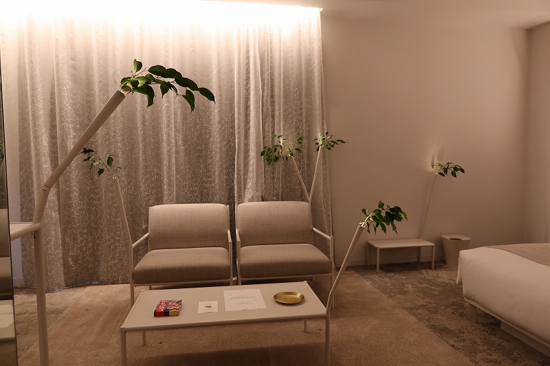 ヘリテージ棟でもう一部屋見せていただいたのが藤本壮介氏が前橋市のビジョン「めぶく。」をテーマにデザインした部屋。室内の家具から管が伸びており、そこにベンジャミンが生けられているという、世界に一室しかないなんとも不思議な部屋である。