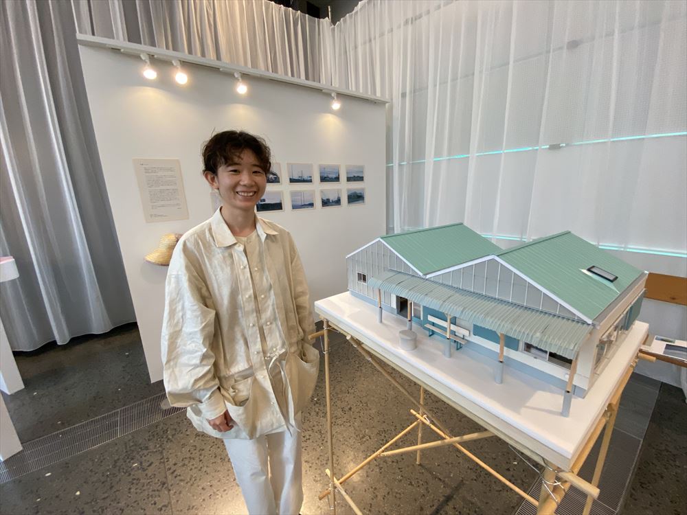 板坂留五さん。1993年兵庫県生まれ。2016年東京藝術大学卒業。2018年東京藝術大学院修了後、独立。2020年より、東京藝術大学にて非常勤講師を務める。2019年秋、修了制作から取り組んでいた両親の店舗兼住宅「半麦ハット」(共同:西澤徹夫)を竣工。翌年に、本建築を通してさまざまな人が考えたことを束ねた書籍「半麦ハットから」(盆地Edition)を出版。2020年春、パン屋兼ギャラリー「タンネラウム」の内装設計を行い、同世代の作家とのトーク「タンネラウムを語らう」と同時に発表。そのほか、演劇や展覧会の会場構成や生活工房ギャラリーのプチリニューアルなどがある。ウェブサイトはこちらhttps://ruiitasaka.ooo/(写真:宮沢洋)展示されたプロジェクトの“強さ”で気になったのはこの2組