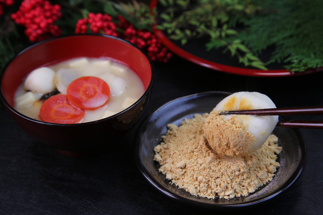 変わったお雑煮といえば奈良県のきなこ餅雑煮や、香川県のあんこ餅雑煮が有名だろう。きなこ餅雑煮は白味噌仕立てのお雑煮に入っている餅を、別皿のきな粉につけて食べるもの。きな粉の黄色が米の豊作や家族の健康、子孫繁栄を意味するのだとされる。