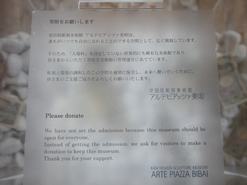 広大な敷地の管理はかつて市が担当していたが、2006年からはNPO法人「アルテピアッツァびばい」が指定管理者として手がけている。入場料収入がなく、自主事業やカフェの収入なども運営費としている。新型コロナウイルスが大きな影響を与えたが、全国に多くのファンを抱え、一度訪れた人が「また来ます」と感想を残すことが多いという。