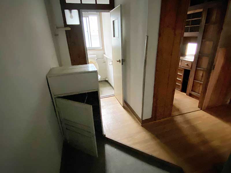 また、47型から48型への大きな変更点として、1階を地面から半階高くし、地下室をつくって戸数分の倉庫を設けたことがある。前述の押し入れといい、この物置きといい、収納は、今も昔も生活者にとっての難題のようだ。