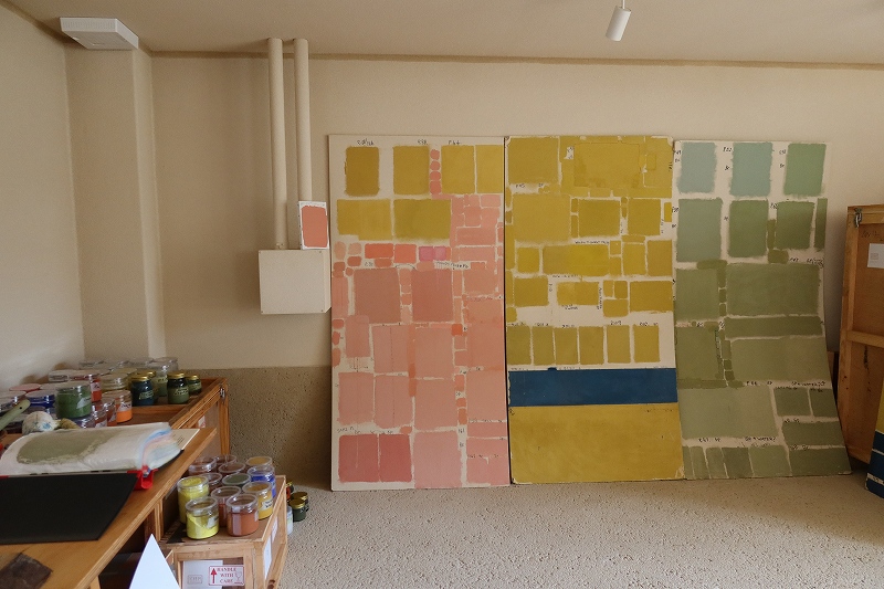 例えば外装のなんとも微妙なニュアンスのあるピンクベージュは114色(!)のレシピを作り、ひとつずつこの土地の光に合うかどうかを検証したうえで選ばれたもの。寝室の白は「何かやわらかいものに包まれる部屋にしたいね」という思いから選ばれた色。LOGでは、館内のギャラリーに置かれているプロジェクトブックで、できるまでの経過をすべてオープンにしているので真似をして作るつもりなら再現はできる。