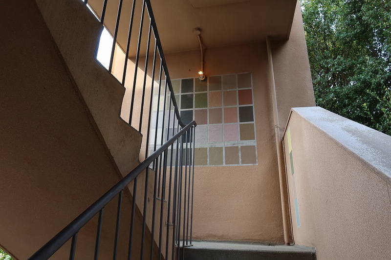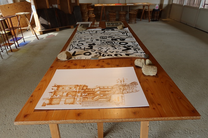 2階にはもうひとつ、宿泊者専用の、時間限定で自由に見られるギャラリーもある。ここには約5年間にわたるLOGの再生に至る実験、検証の一部が展示されており、繰り返した色の実験やロゴが生まれるまでの経過などを見ることができる。それがどこに置かれているかを客室や、敷地内で探してみるのも楽しいと思う。
