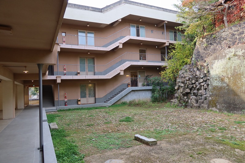 中近世の寺社の周辺に近現代に建てられた住宅が入り交じり、その間を細い路地と坂、階段が複雑に交差する山手側に現LOG、かつて新道アパートと呼ばれた建物が誕生したのは1963(昭和38)年のこと。山手側では珍しい鉄筋コンクリート造、3階建て、40m2の部屋が24室という、今からするとごく普通の、だが当時としてはとてもモダンで、新婚カップルには憧れのアパートだったという。