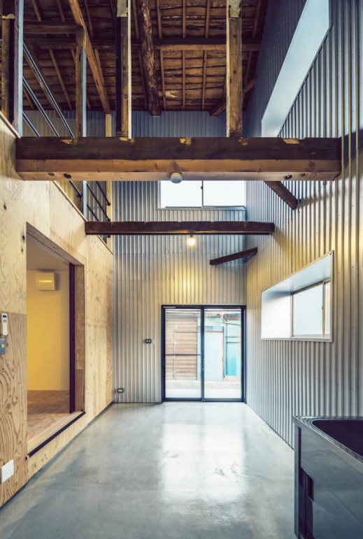 もう1軒、これまでだったら選ばれにくかった住宅のリノベーション事例として「文化住宅からガレージを備えた長屋へリノベーション」(株式会社アートアンドクラフト)も挙げておきたい。これは木造2階建て、全20戸の共同住宅を3戸の長屋にリノベーションしたもので、耐震補強などは施し安全は確保するものの、それ以外は既存の建物を使い、そこに居住空間の箱を挿入するという形を取っている。居室部分以外は隙間風もあると説明する潔い住まいで、それでも選ぶ人がいる。住まいに求めるものの多様化を実感する作品である。