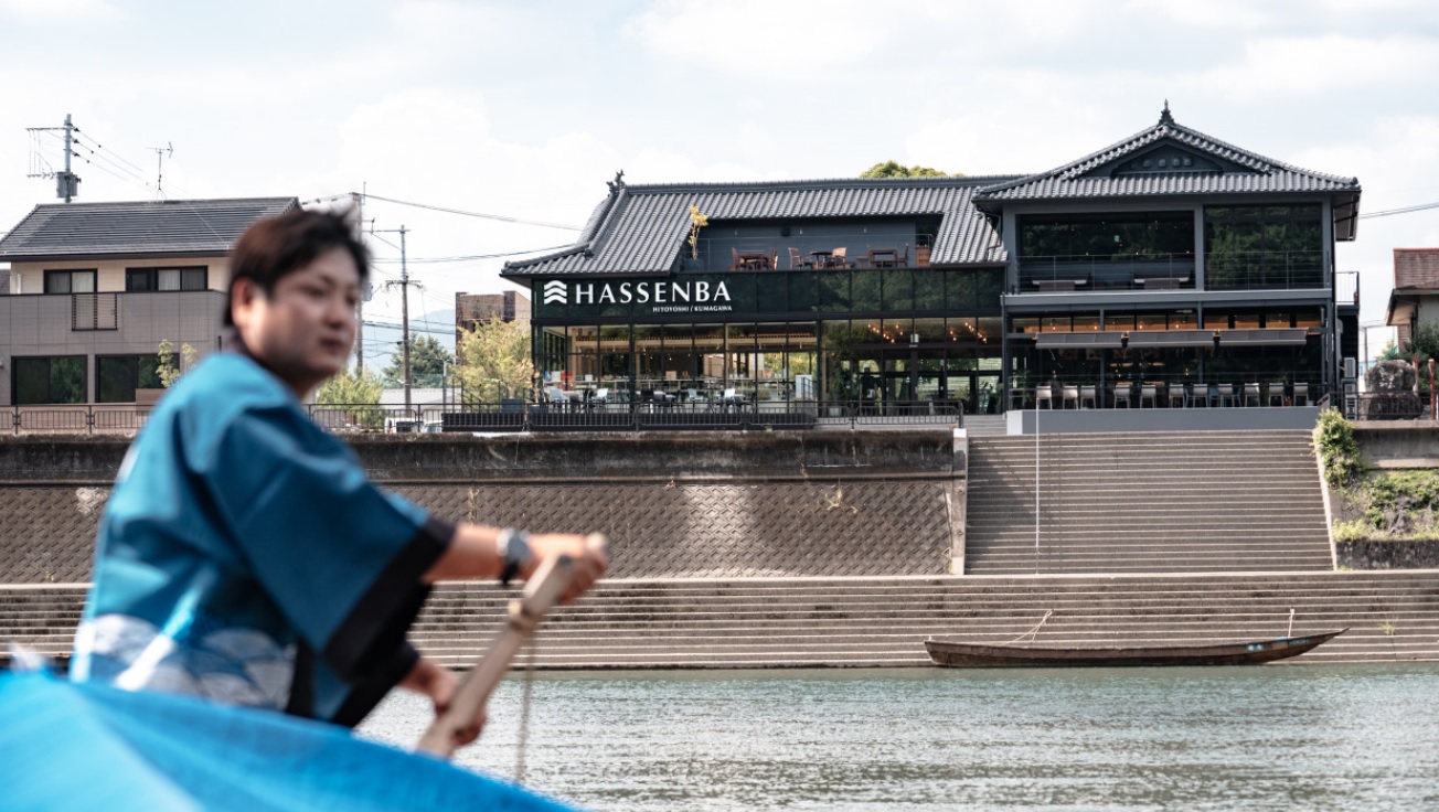 最後に総合グランプリを受賞した「災害を災凱へ」(タムタムデザイン+ASTER)をご紹介しよう。この作品は2020年7月の豪雨により洪水被害を受けた熊本県人吉市において、観光施設「球磨川くだり発船場」を「HASSENBA」としてわずか1年で再生したもの。被災当初は100年以上の伝統のある球磨川くだりの再建は絶望的と思われていたそうだが、事業主の強い意志の元に九州中から有志が集まって復興へのスタートを切り、短期に完成を迎えたという。