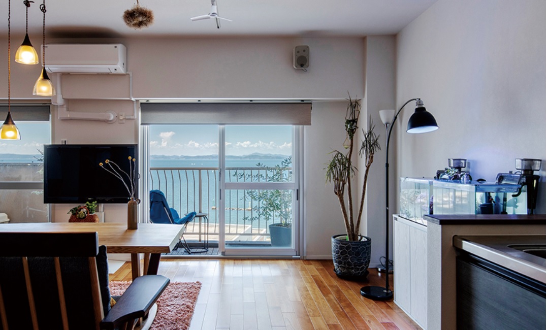 その名の通り、絶景リノベーション賞を受賞した「穏やかな瀬戸内の海とともにある日常」(よんてつ不動産株式会社)も窓外にこだわったもの。物件探しからスタートしたというリノベーションで、リビングの眺望はまるでリゾートマンションのようだ。