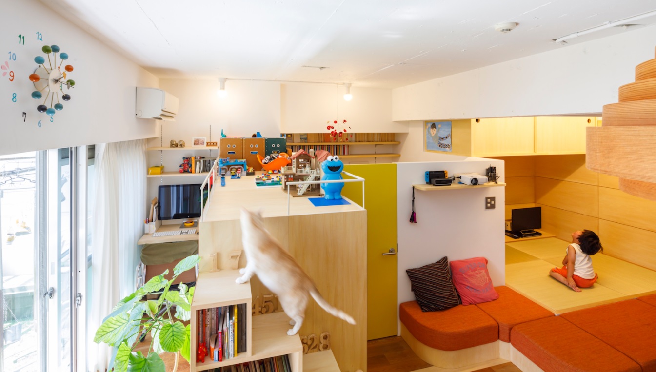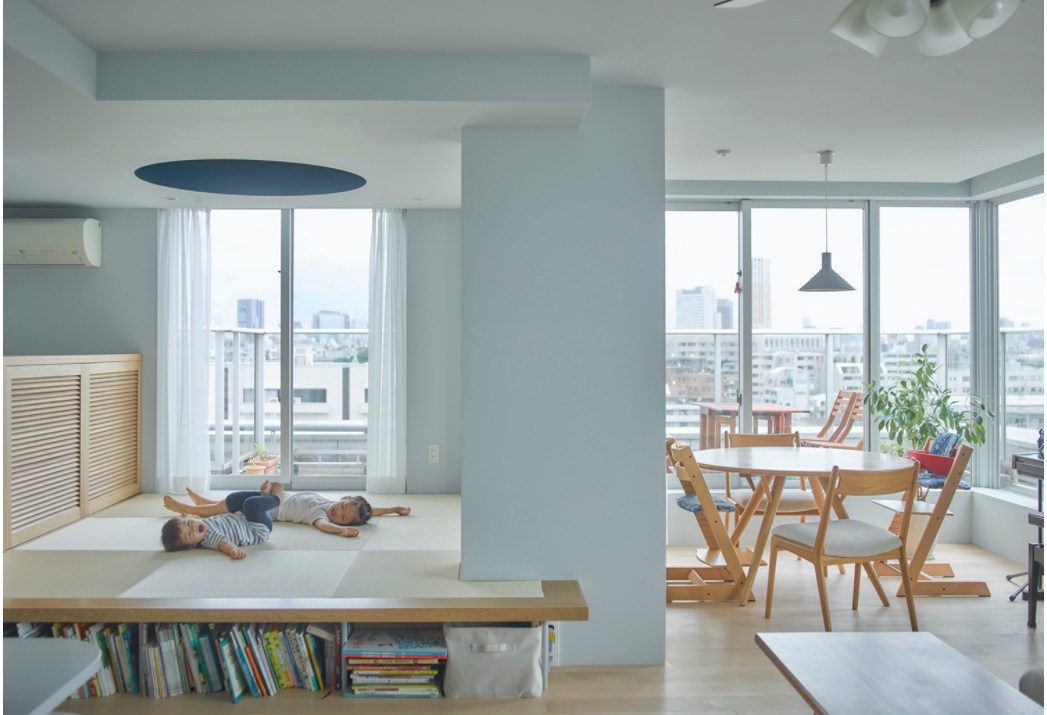 この作品は家族構成、ライフスタイルの変化から2007年に続き、2021年に二度目のリノベーションをしたご家族のもので小上がり、ロフトと住戸内に高さの違う空間が複数あり、子ども、猫にとっては実に楽しそうな空間。子どもの成長に伴って変化は必要と次のリノベーションもすでに視野に入っているそうで、その時々にベストな住まいに変化させられるのもリノベーションならではである。