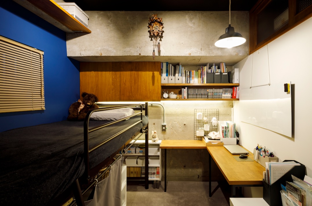 家と外の関係の再考という例を挙げてきたが、家の中に外を作るという作品もあった。ラブリーデザイン賞を受賞した「ハウスインハウスでタイニーハウス」(株式会社ブルースタジオ)である。これも持ち家の二回目のリノベーションで、子どもの成長に合わせて玄関脇に個室を作ったものだが、それがまるで家の中にもう1軒の家があるような作り。ドアの脇には赤いポストもあり、外壁もそれらしい。こんな子ども部屋で育ったら自立心が養われるかもしれない。