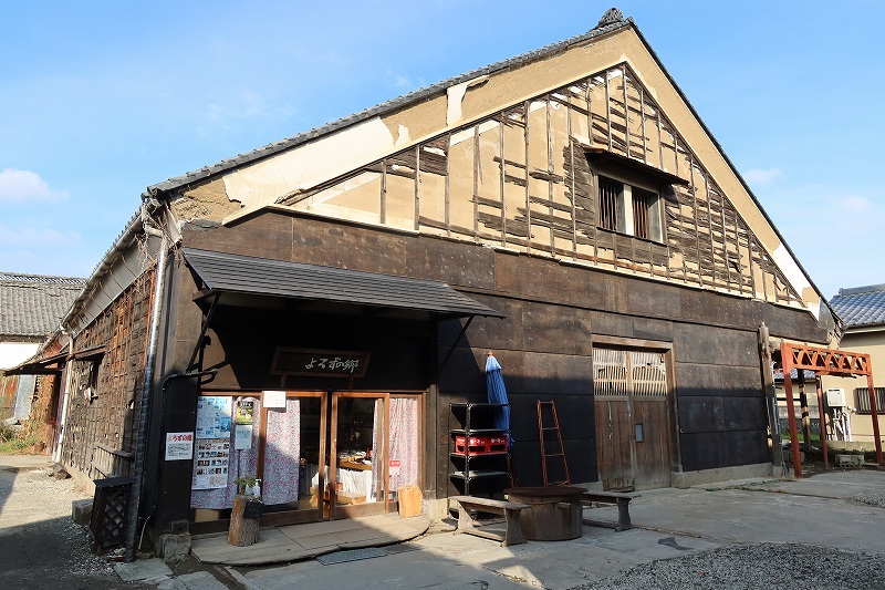 旧中山道に面し、かつては商品を販売していた場所はなんでも屋になっており、布製品から地元の産品、卵までが雑多に並べられていた。通路を挟んだところにある蔵はギャラリー深谷宿本舗という名称で、地元の手作り作家の作品が並ぶ。入口には地元の野菜が並べられることもある。