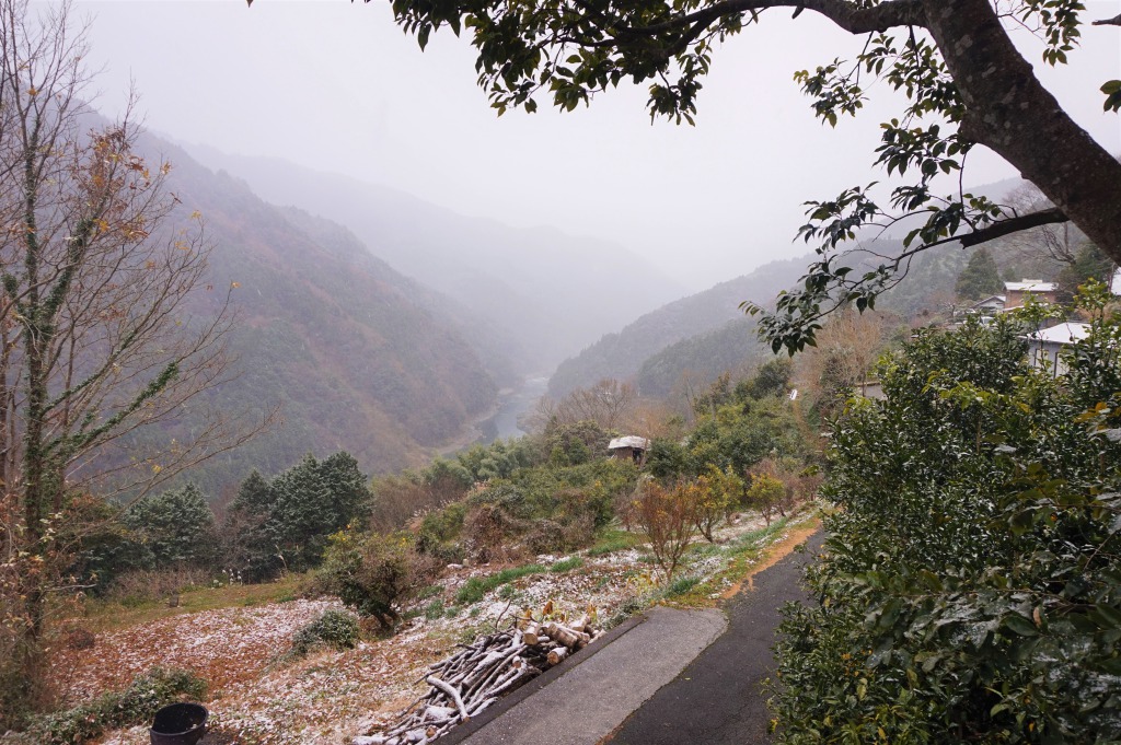 数日前、寒波が日本列島を覆った際に、この大豊町にも雪をもたらしていた。南国土佐では、この周辺にのみ雪が降り、坂道ではスリップしないかと冷や冷やであった。