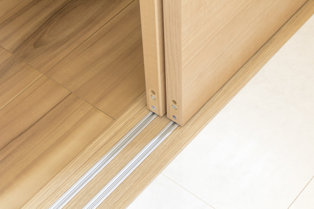扉としてよく使われる開き戸は、実際の有効開口寸法が720mm程度となり、車椅子では通ることができない。病気による四肢の障がいなどで、扉を引く動作が困難になった場合、開き戸から引き戸への変更が有効だ。