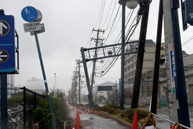 デメリットの1つ目として、台風等による倒壊で道がふさがれることが挙げられる。災害時に電柱の倒壊によって道がふさがれれば、救急車等の緊急車両の通行の障害となり、迅速な災害対応の妨げとなってしまう。現在、日本では国を挙げて国土強靭化を推進しているため、防災の観点から無電柱化が社会的に要請されている。