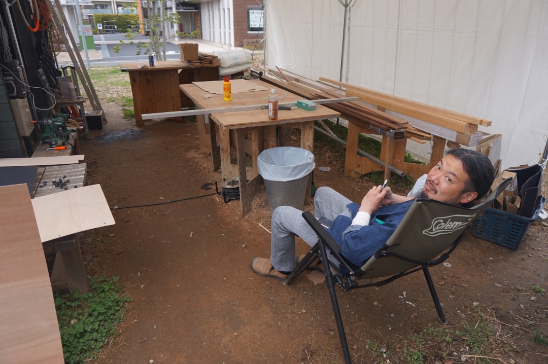 テーマであるDIYを実現できる手段として、大工に住んでもらっているのも特徴だ。月に1回、庭先でシェア工房を開いていて、DIYが得意ではない住人、DIYがほぼ初めての住人も多く参加している。「住人さんたちは、DIYといっても最初は何をしていいかわからないようです」と大工の鈴木大地さん。