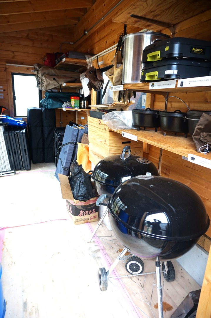 最初は、コミュニティビルダーである辻さんの声かけで、皆で庭の倉庫にある備品を使ってみようというところから始まった。倉庫にはバーベキューの機材が充実していて、敷地内には決められた場所にバーベキュースペースがある。住人はそれらを無料で利用できる。