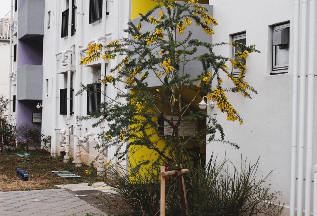 内装は、住人が好みの壁にリフォームできるなど、一般の賃貸住宅よりも自由度が高いのが特徴だ。そのため、リフォームしやすいスケルトンタイプになっている。外観にはカラフルなワンポイントがある。階段ごとに色が違い、住人は「何号室の者」というより、例えば「水色の2階です」とか「オレンジ色の3階です」という言い方をするそうだ。