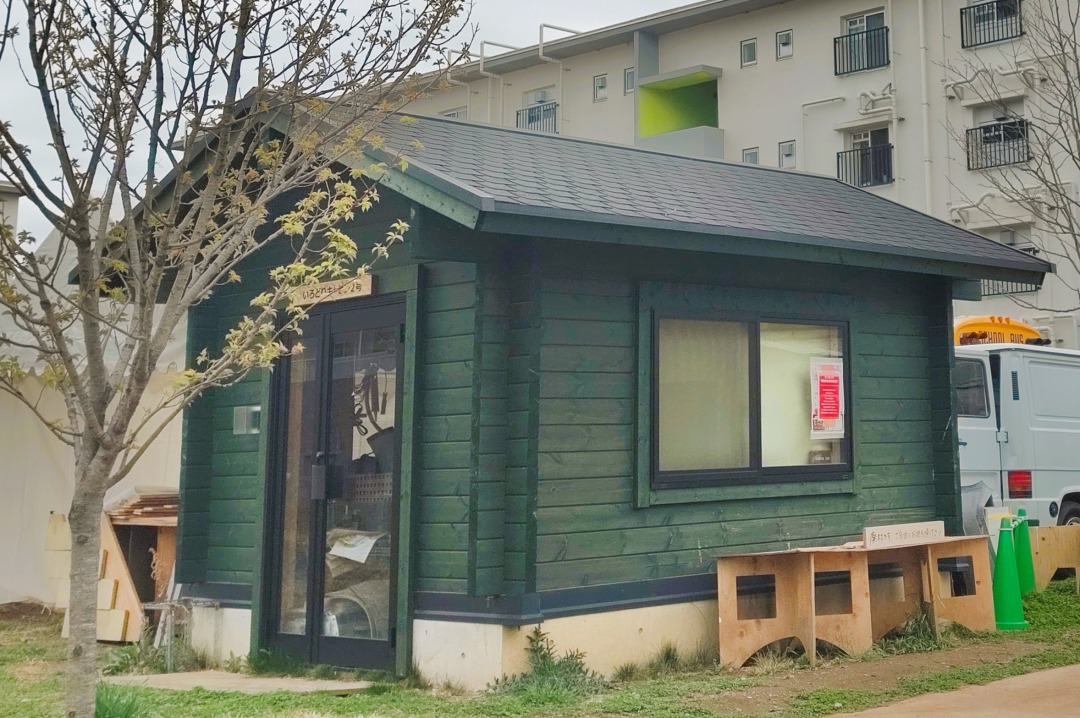 下出さんは、住人同士のコミュニティが形成されていくことに興味があって、いろどりの杜に住み始めたそうだ。住人のそれぞれのスキルを持ち寄ってイベントするのが楽しいという。デザイナーの下出さんは、昨年の10月のイベントで宅配ボックス等として使われている小屋の外壁に、ペインティングするイベントを開催した。黒い枠を下出さんが描き、住人や近隣の小さな子どもたちが、色を塗っていった。