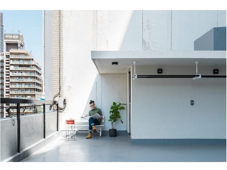 「このビルにはエレベーターがありません。そのため4階の住人は不便ですが、裏を返せば屋上のバルコニーには一番近いということにもなります。屋上を魅力的な空間とすることで、本来マイナスとなる部分をカバーしています」と枇杷さんが言うように、屋上は、たっぷりの日差しの中で、都会のオープンエアが楽しめる空間になっていた。