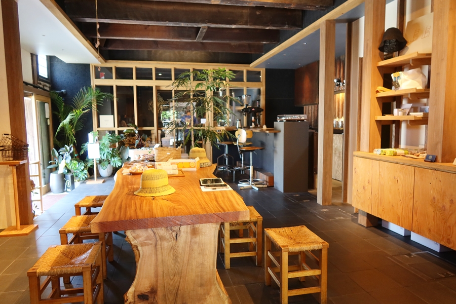 蔵は中央にテーブルが置かれ、奥には焙煎所、その手前にカフェのカウンターという作りになっており、壁際には紅茶やレモンを利用した食品、布製品、帽子などさまざまな地域の産品が並べられている。これらの商品開発、ブランディング、企画なども地元の人と一緒に進めているそうで、最近ではレモンの搾汁施設を作れないか、害獣として駆除される猪をちゃんと食べられるようにできないかなどの話もあると根本氏。宿を作る仕事をしていたはずが、いつのまにか、まちづくり、地域おこしをしていたというわけである。