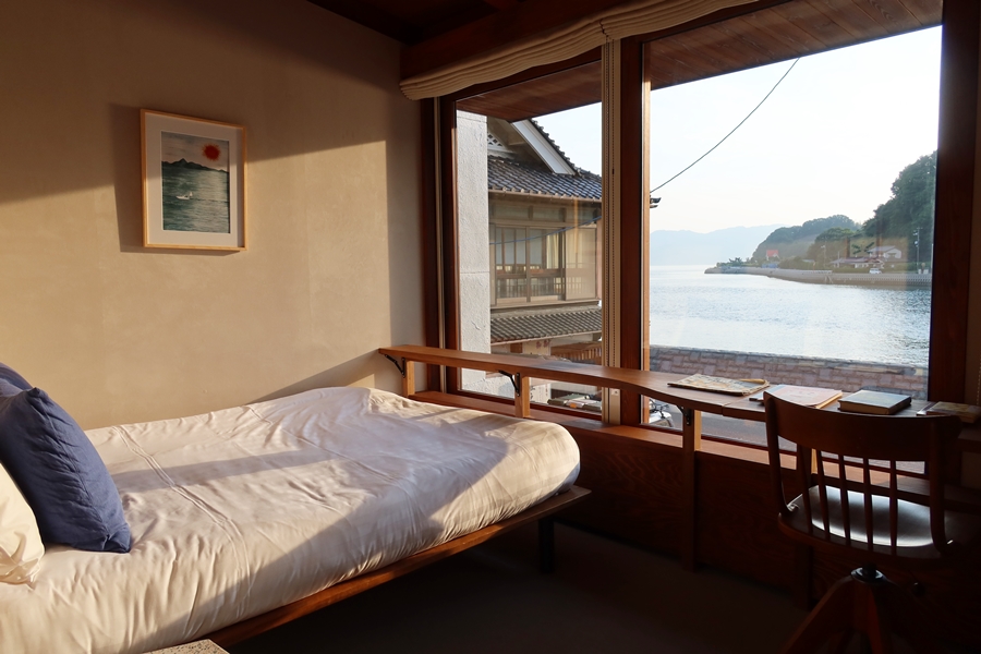 SOIL SETODA1階は食堂であり、ちょっとした仕事のできる空間でもある。段差のある店内は季節によっては半戸外になり、気持ち良く潮風が入る。仕事をするより、のんびり、ぼーっとしたくなるのが難かもしれない。2階の客室は海に面した個室4室とドミトリーの2種類。個室はベッドの中からも海が望めるという贅沢な作りになっており、人気があるのもうなずける。