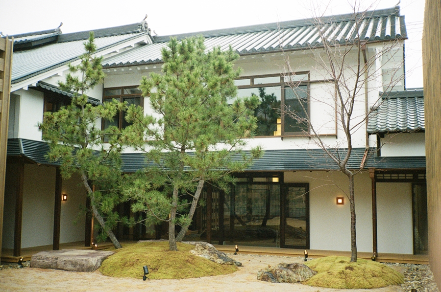 また、ダイニングから見える庭もごちそうのひとつ。河津桜、いろは紅葉、枝垂れ柳にクロマツが植えられており、河津桜は開業時に満開になるように選ばれたとか。庭を挟んで向こう側には新設された宿泊棟があり、隔てるのはかつて宮中の遊びだった蹴鞠のときに建てられたという蹴垣を模した高い垣根。プライベートを守りながらも野暮にならない工夫である。