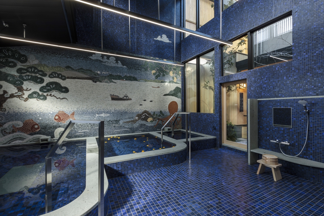Azumi Setodaと向かい合って立っているのは銭湯宿yubune(ユブネ)。施設内の銭湯は、宿泊した人たちが利用できるだけでなく、町の人はもちろん、通りすがりの観光客も含めて誰もが利用できる。YubuneはAzumi Setodaよりカジュアルな雰囲気の宿となっている。