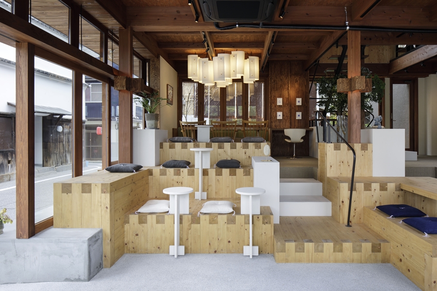 この2棟の間の奥、商店街沿いにはさらに2つの建物がある。ひとつはかつて瀬戸田で主に製塩業や海運業を営んでいた豪商・堀内家の住宅を改装した宿、Azumi Setoda。明治時代初期、1876年に建てられたという歴史ある建物を再生したものである。安曇(あずみ)は古代日本の部族のひとつで、海の民といわれ、日本のあちこちにその名に由来する地名が残る。旅する民族だったともいえるわけで、ロマンを感じさせてくれる。
