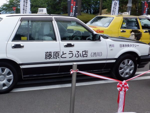 頭文字Dの象徴である藤原とうふ店のAE86仕様の塗装をしたタクシーがスタート地点に来た。よく見ると天井には「ぐんま」と書いてある。群馬県は富士重工業のお膝元であり、自動車産業が地域の経済を支えている。渋川においても法人市民税のうち、温泉などの観光関係が占める割合は昨今、低下しているという。