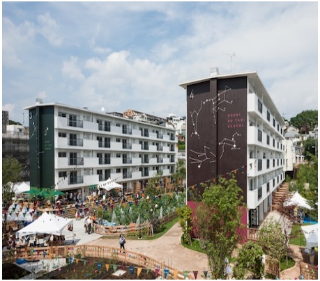 もうひとつの大きいは社宅。作品としては「『企業』の資源を『街』の資源へ還元するーNTT社宅6棟を利活用ー」(リノべる)で、今後、社宅や企業の寮、場合によっては支店、営業所がどんどん使われなくなっていく。それをどう使うか。
