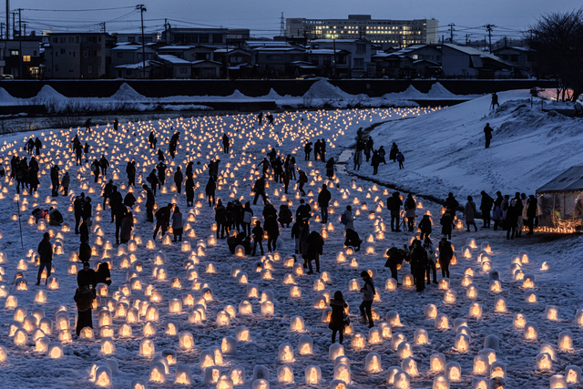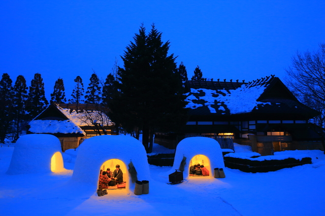 毎年2月15日と16日に開催され、横手市内には約80基のかまくらが並ぶ。かまくらの中では甘酒が温められて、餅が焼かれており、声をかける子どもたちから購入してアツアツをいただくと、いかにも降雪地帯らしい風情だ。かまくらの行事自体は400年以上の伝統があるが、今の様式になったのは明治時代以降のことらしい。