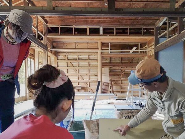「お客様とのコミュニケーションのひとつとして、真備地区のあるお客様と行ったのが、壁修繕のワークショップイベントです」と采女さん。参加者に、被災住宅の壁の修繕を実際に行ってもらうというイベントだ。参加者と被災者がワークショップを通じてコミュニケーションを図ることで、被災者の気持ちを前向きなものにすることが目的だったという。