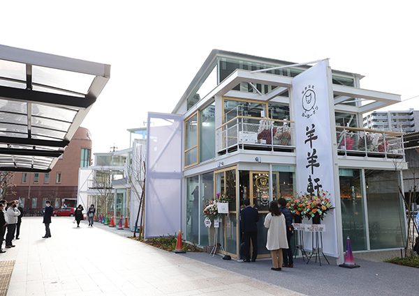 アスティ一宮の改装オープンに続き、12月14日には、尾張一宮駅前ビル南側の駐車場の一角に、5棟の建物からなる商業施設「尾州ビレッジ」が開業した。高さ7mほどの建物が並び、ガラスを多用した開放感のある造りが特徴だ。夜になると建物から明かりがこぼれ、店内のにぎわいが伝わってくる。まずは洋菓子カヌレのテイクアウト専門店「RonRon THE SECOND(ロンロン ザ セカンド)」と、ジンギスカンが味わえる飲食店「なまらむ 羊羊軒」の2店舗が先行オープン。今年春にはクラフトビール工房「尾州ブルーイング」が新たに営業を開始する予定だ。