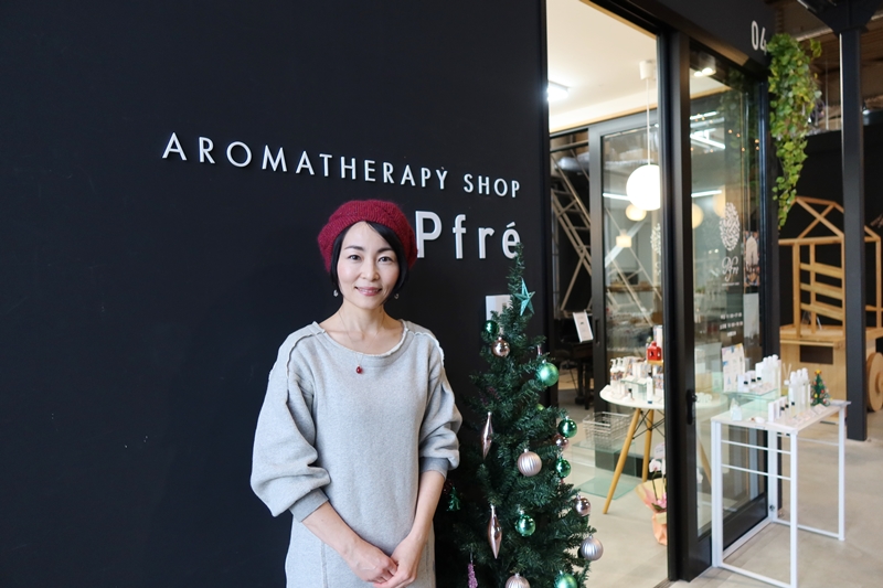 どこに店を構えていても必ず通るのが1階中央の公園。その意味ではここは来訪者のみならず、オフィスや店舗を構えている人たちが顔を合わせる場でもあるのだろう。ここに店を構えるメリットをアロマテラピーショップPfreの二田雪絵氏が語ってくれた。