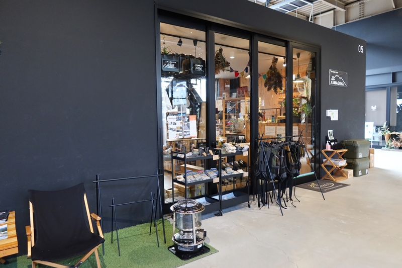 公園を囲んで1階には8店舗が入っている。輸入壁紙のインテリアショップ、ドライフラワーの専門店、花屋、アロマテラピーとハーブティーの専門店、アウトドア用品のセレクトショップ、ヘアサロン、こだわりの食料品店、2023年4月オープンを目指すパーソナルヨガ&トレーニングルームで、どの店も街中にはあまりないタイプの、個性のある店である。