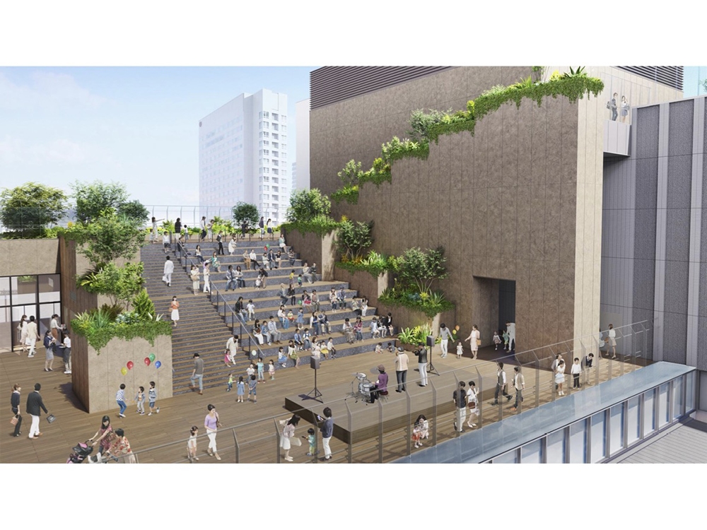 さらに田原さんによれば「新駅ビルの特徴的なものが、屋上広場です。屋上広場には雁木(がんぎ)状の大階段を設けます。これは広島を流れる太田川などにある雁木をモチーフにしたものです。雁木状の大階段に座ると、駅から南方向の市街地が一望できます」。