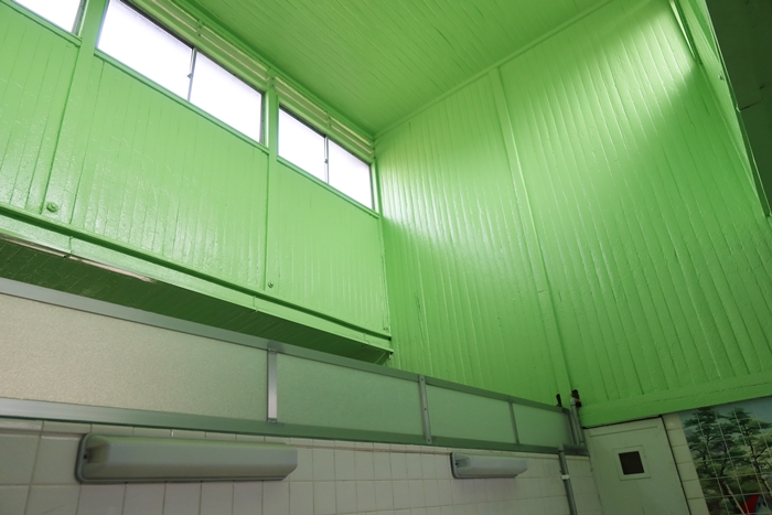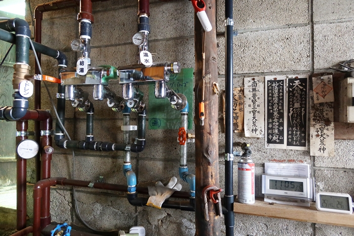 「配管をやり直し、温度計もなかったところを素人でも簡単に湯温が調節できるようにしてもらいました。床も地元の材で張り直し、壁は自分たちで足場を組んで塗りました。幸い、直すのに1,000万円ほどかかると言われていたボイラーは壊れていなかったので助かりましたが、それでも配管、床、目隠しその他で800万円ほどかかりました」