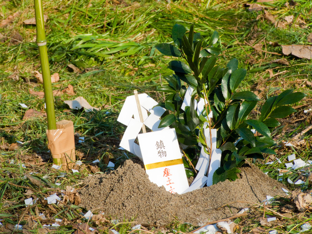 家を建てる際には、地鎮祭が催行される。土地を掘り起こしたり、土地の上に柱を立てたりする前に、神様に挨拶をし、工事の安全と建物の守護を祈るのが地鎮祭だ。