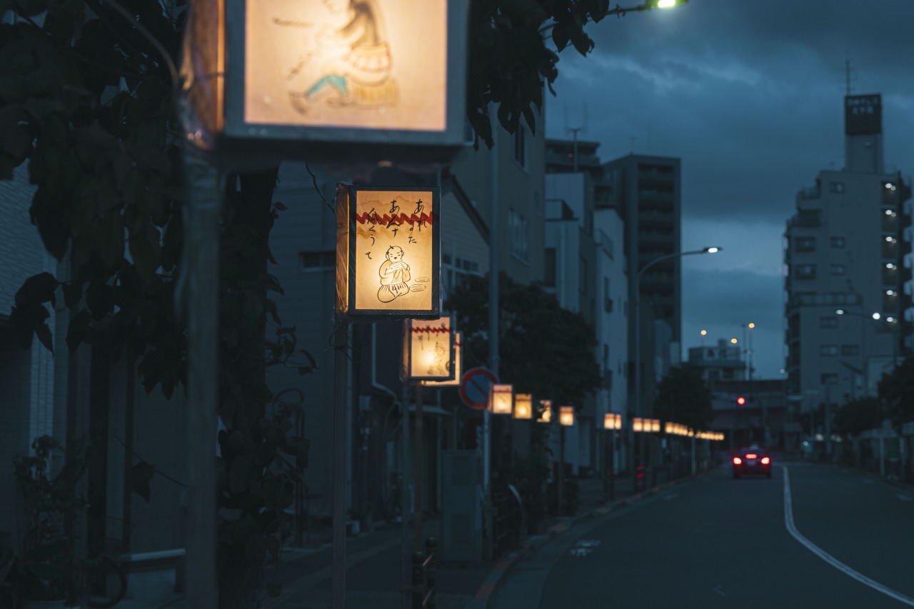 100個の地口行灯が3つの商店街につけられ、同時に子どもたち向けには「地口あんどんの謎を解け」謎解きラリーがスタートした。