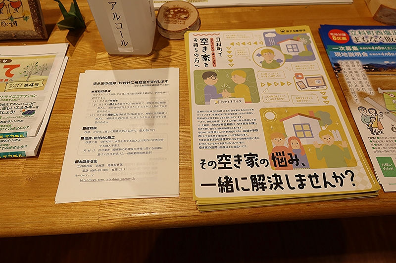 立科町に住みたい、場が欲しいという人は少なからずおり、永田さんと取材で町を歩いている間にも相談を聞いた。店舗、住居だけでなく、福祉関係の場が欲しいという例もあり、地域には使える不動産がないことで充足できていないニーズもあるのだろうと思った。