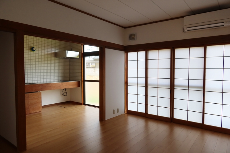 もともとは3DKだった間取りをリビングとキッチン、リビングと窓でつながる個室、独立したワークスペース1室に変更。ワークスペースは解体から断熱改修、左官仕上げまでをワークショップで地元の人たちや移住者などとして造った。