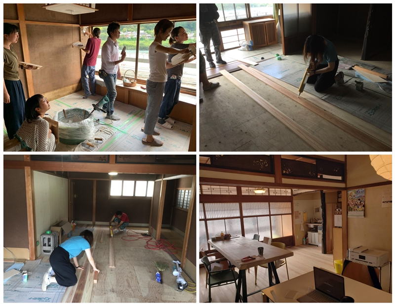 そこから思いついたのが「TENJIKU」というサービスだ。TENJIKUは地域が抱える課題に“ミッション”として取り組みながら、全国の拠点=TENJIKUに無料で泊まれるというもの。ミッションとしては地域の魅力のPR、宿の掃除や洗濯、DIYや農作業、地域の学童などさまざまな場での体験が想定されており、三奇楼での最初のミッションはそれまで活用されていなかった離れの改修。シャワー、トイレを設置、ベッドを置いて泊まれるようにし、床の張り替えや壁の塗装などのリノベーションを地域の人と一緒に進めていった。