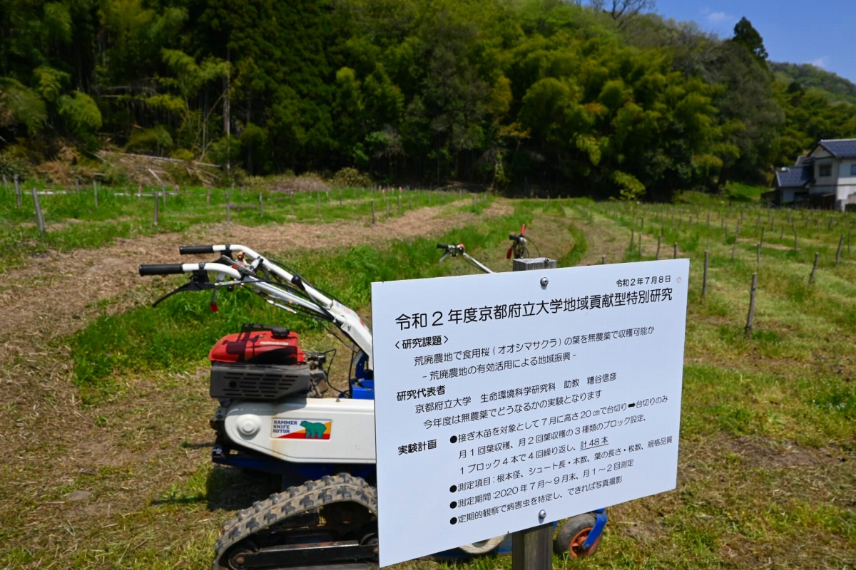 与謝野町では、産学協同の取組みも進んでいる。京都府立大学 生命環境科学研究科の研究で、桜の樹の間隔を空けると虫害を防げることが分かり、農薬を使わない栽培が実現できたのだ。「桜で観光客を呼べる町へと、着実に歩んでいると思います」と平出さんは笑顔を見せる。