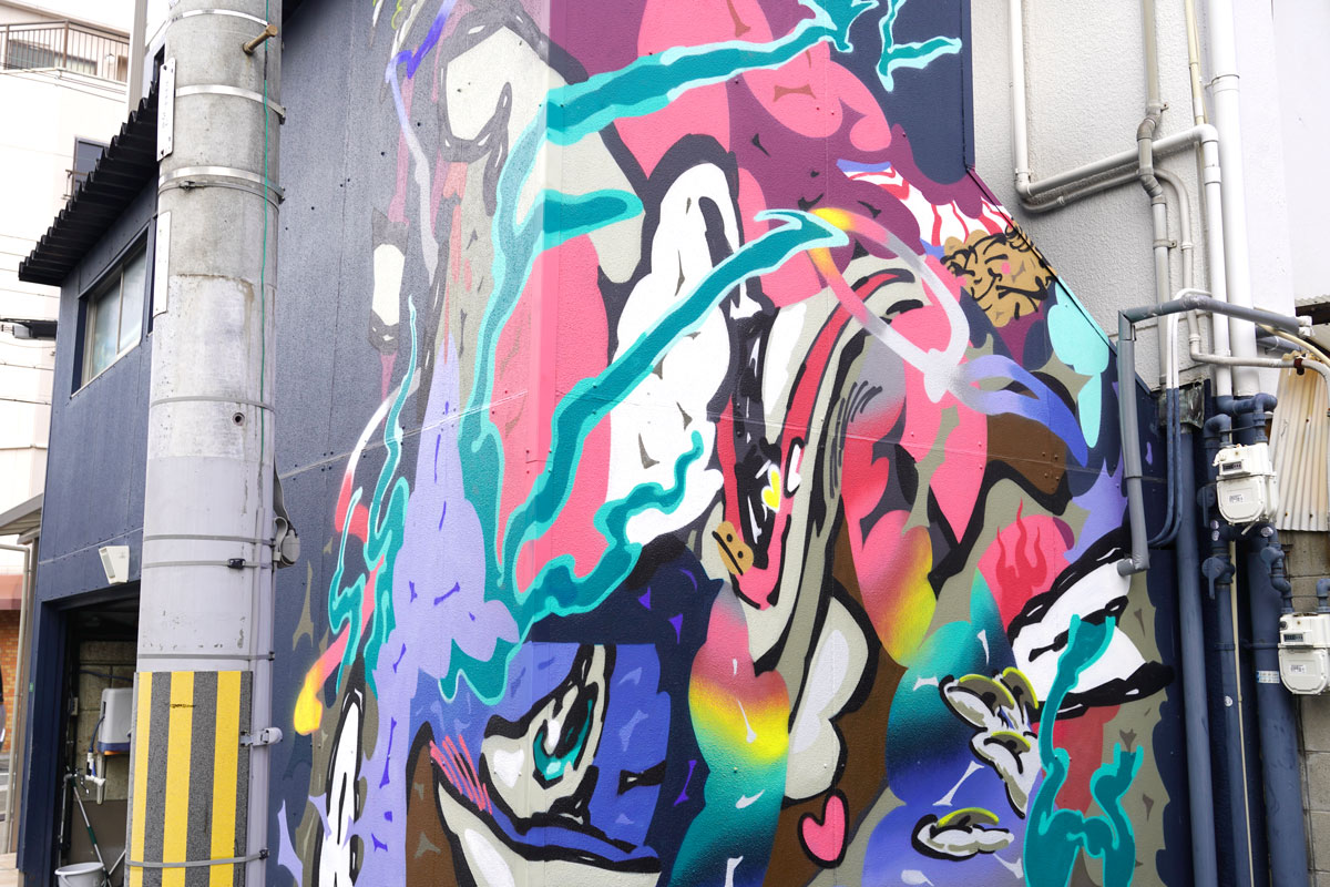 「日本ではミューラルという文化はまだまだ発展途上なので、いろいろな意見をいただきますが、長く暮らす70歳のおばあちゃんがミューラルを見て、街を明るくしてくれてありがとうと言っていただけた時はうれしかったです。うちの家の上にも描いていいよと言ってくれる大家さんもいます。特に大阪では、面白そうだからやったらええやんと言ってもらえるケースが多い気がします」
